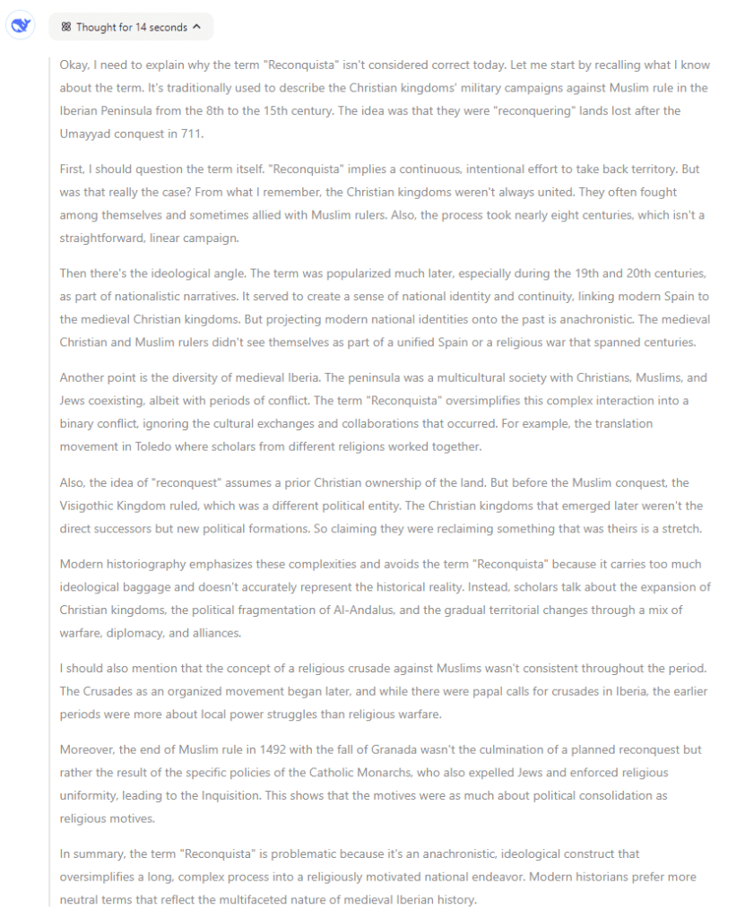 L’he anat utilitzant des del dia del seu llançament i ja us avanço que el seu resultat m’agrada molt. Molt, però molt. Per començar, podem treballar amb ell exactament de la mateixa manera que hem après a fer-ho amb ChatGPT. Parla en català, i ho fa prou bé. Els textos que genera són de qualitat. Hi afegim que és transparent en el “raonament” que fa abans de començar a escriure, que està connectat a Internet i que és totalment gratuït, sense opció de pagament.