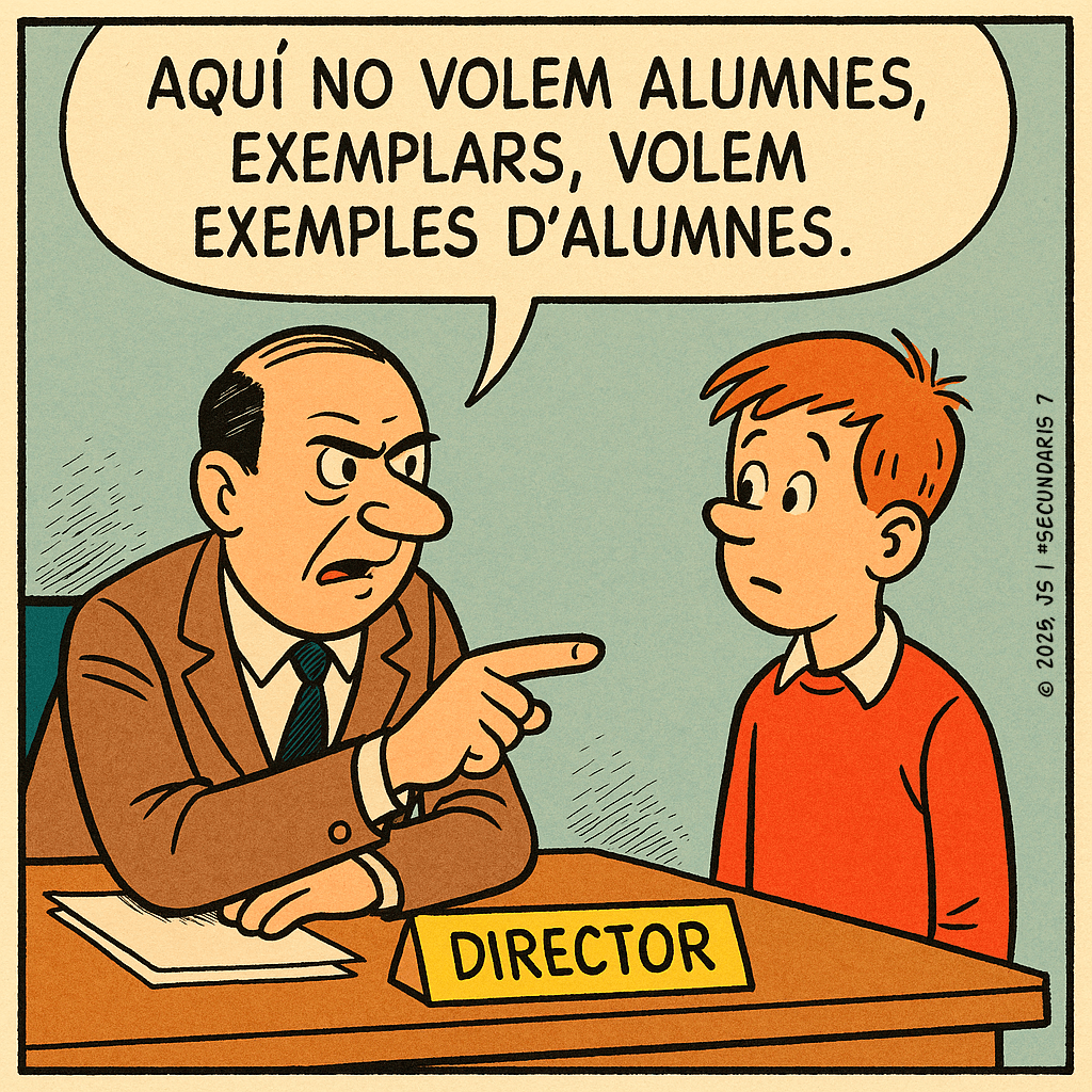 En aquest microcosmos regnen les mateixes lleis que a la selva: el més adaptat no és el més fort, sinó el que sap fer veure que entén les instruccions del Departament. Les reunions serveixen de ritu social, on els exemplars competeixen per la paraula mentre fingeixen escoltar-se. L’aliment bàsic és el rumor; la migració anual coincideix amb el canvi d’horaris; i el depredador natural és… el calendari escolar.